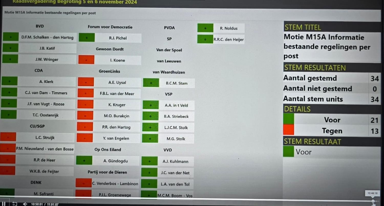 Motie bestaande regelingen per post ingediend in de Gemeenteraad Dordrecht 5 november 2024 samen met DENK Dordrecht🇦🇹