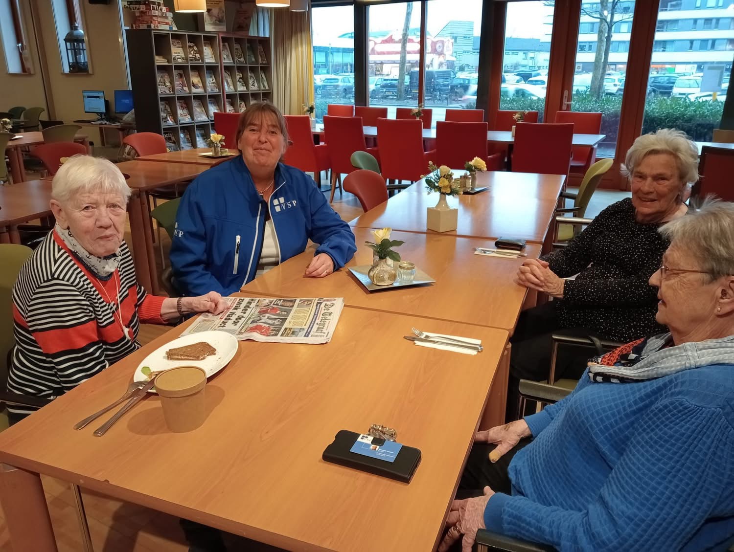 Wij bezochten daar de zaal, waar ook de bibliotheek is gevestigd, en spraken er met mensen die gezellig koffie dronken met elkaar. De koffie is daar nog redelijk te betalen en de ambiance is fijn.