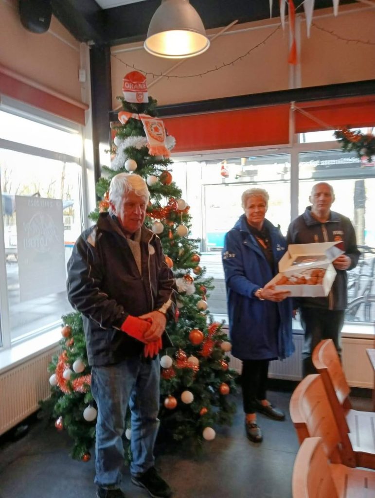 Deze week bezocht de VSP Sv Oranje Wit Dordrecht , een vereniging die in mei volgend jaar 100 jaar bestaat. Oorspronkelijk begonnen als voetbalvereniging, biedt Oranje Wit tegenwoordig een breed scala aan activiteiten, waaronder voetbal, tennis, padel en biljart. Om de vrijwilligers van Oranje Wit in het zonnetje te zetten, brachten wij op vrijdag heerlijke verse oliebollen van @ Dordtsche Gebakkraam mee. Tijdens ons bezoek waren er diverse vrijwilligers aan het werk, die de oliebollen met enthousiasme in ontvangst namen. Bij Oranje Wit zijn er ongeveer 300 vrijwilligers, elk met hun eigen taken, wat ervoor zorgt dat de velden, banen, kleedkamers en kantine er tiptop bij liggen. Hulde aan alle vrijwilligers die hun werk met hart en ziel doen voor deze vereniging. De VSP waardeert deze inzet enorm, want een vereniging kan onmogelijk zonder vrijwilligers!