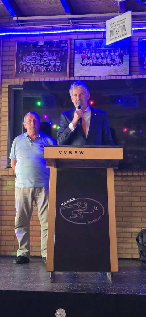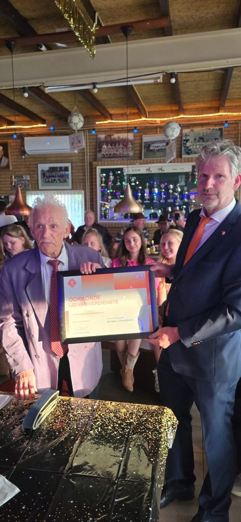 🎉 Vandaag vierden we een bijzondere mijlpaal: Ome Jan Pruijmboom is 40 jaar voorzitter van SSW, één van de langstzittende voorzitters in Nederland! 🏆 Zijn toewijding werd vandaag erkend door Sander van Beuzenkom van de KNVB die hem benoemde tot lid van verdienste.