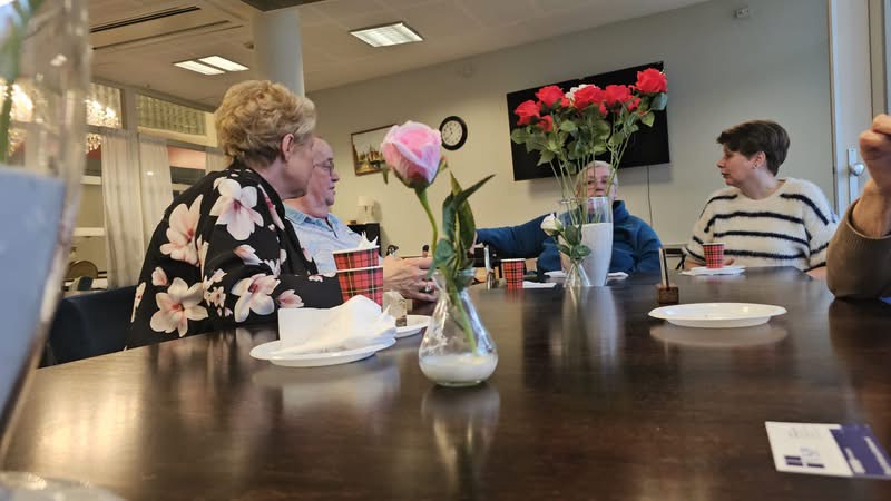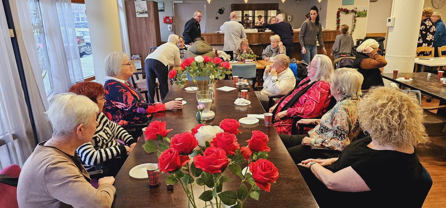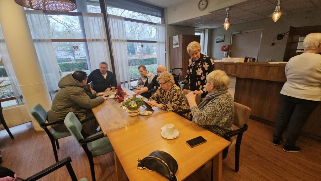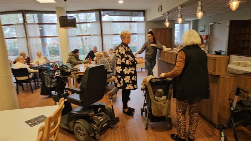 🇦🇹Om de bewoners een hart onder de riem te steken, bezocht de VSP hen met oliebollen en een koffieketel, die belangeloos was aangeboden door Menno DeFeo van DMG Showtechniek. Langzaam maar zeker vulde de zaal zich met bewoners, waar fijne gesprekken plaatsvonden en waardevolle informatie werd uitgewisseld. De bewoners genoten van het samenzijn en de koffie met oliebollen.