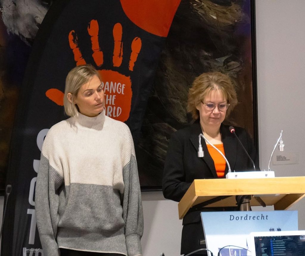 De VSP was dinsdag aanwezig bij de opening van de campagne Orange the World. De campagne is bedoeld om meer aandacht te vragen voor de bestrijding van het vaak onzichtbare toenemende geweld tegen vrouwen en kinderen met als triest dieptepunt femicide. Tijdens de bijeenkomst benadrukten wethouder Merx en Stichting Filomena dat we met elkaar een antwoord moeten vinden op deze problematiek en dat het iedereen kan raken. Met aangrijpende liedjes en een gedicht werden de gevolgen van geweld tegen vrouwen tot uiting gebracht. Als slotstuk werd de gevel van het Stadhuis oranje verlicht. De kleur oranje staat voor een toekomst zonder geweld en voor hoop en een betere wereld.