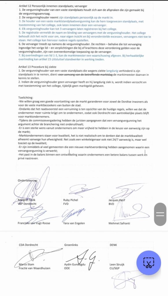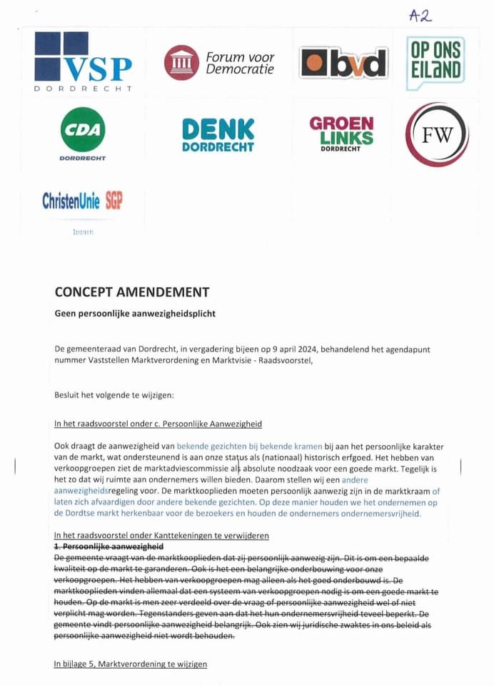 Goed nieuws voor ondernemers van de Dordtse markt! Ons amendement “aanwezigheidsplicht” is aangenomen. Hierdoor kunnen vergunninghouders zich laten vervangen en blijft het ondernemerschap op de markt herkenbaar voor de bezoekers. Ondernemersvrijheid is een belangrijk goed👊🏻🇦🇹